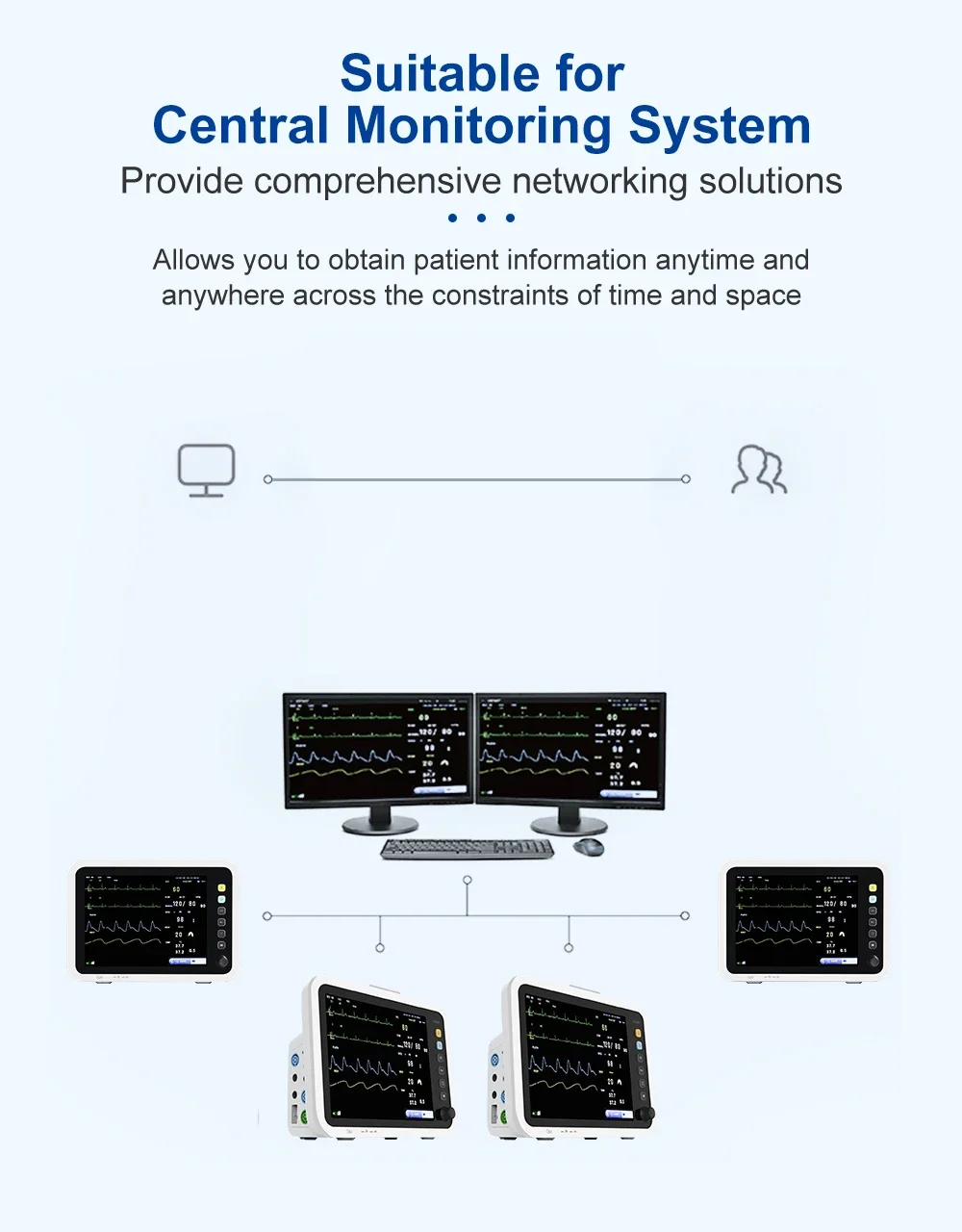 ✔ Wire/wireless central monitoring system applicable to ICU/CCU/OR