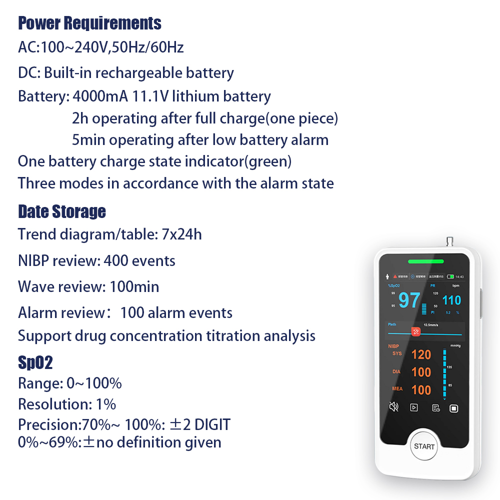 4''-Portable Patient Monitor Vital Signs-SPO2,NIBP Handheld Patient Monitor