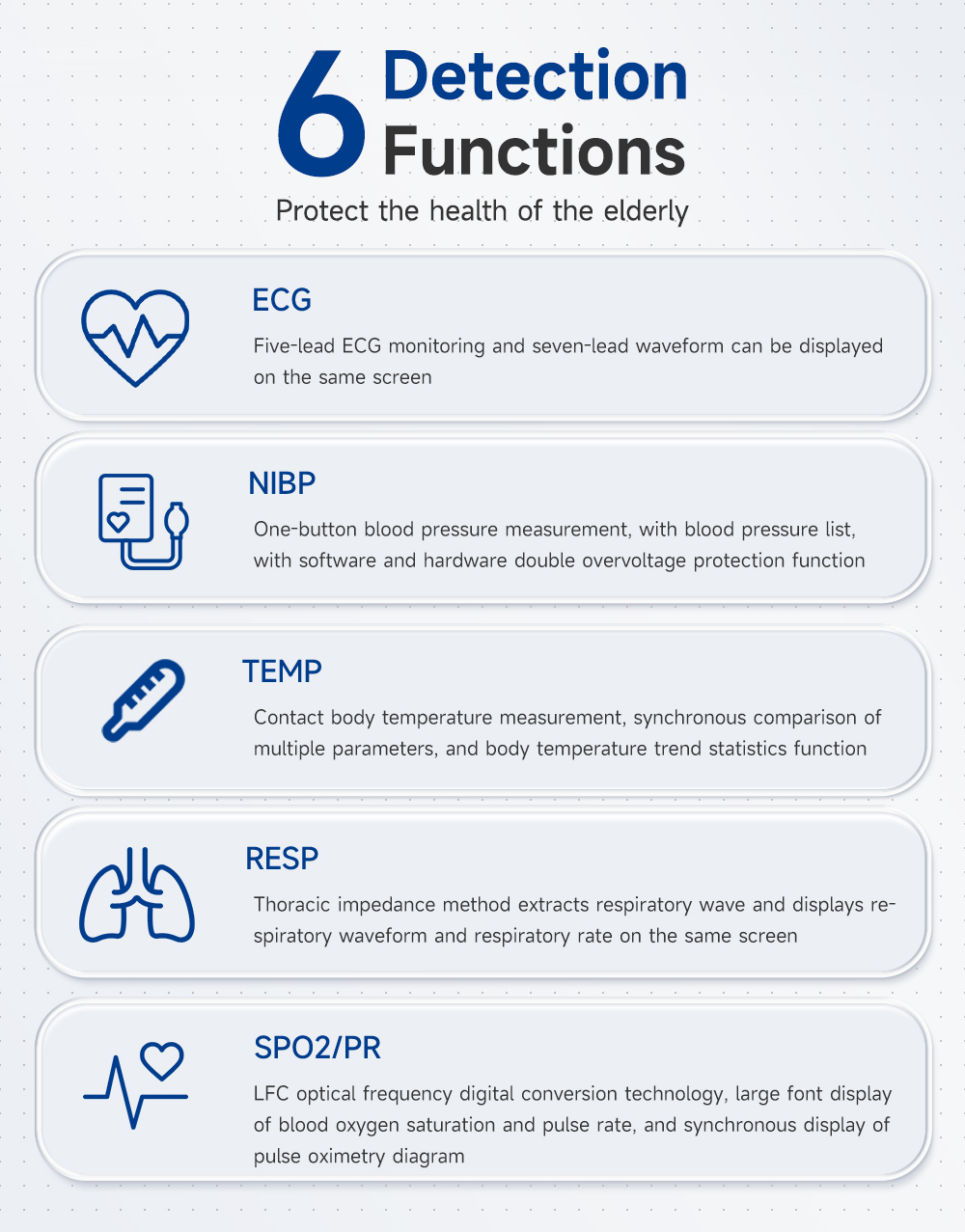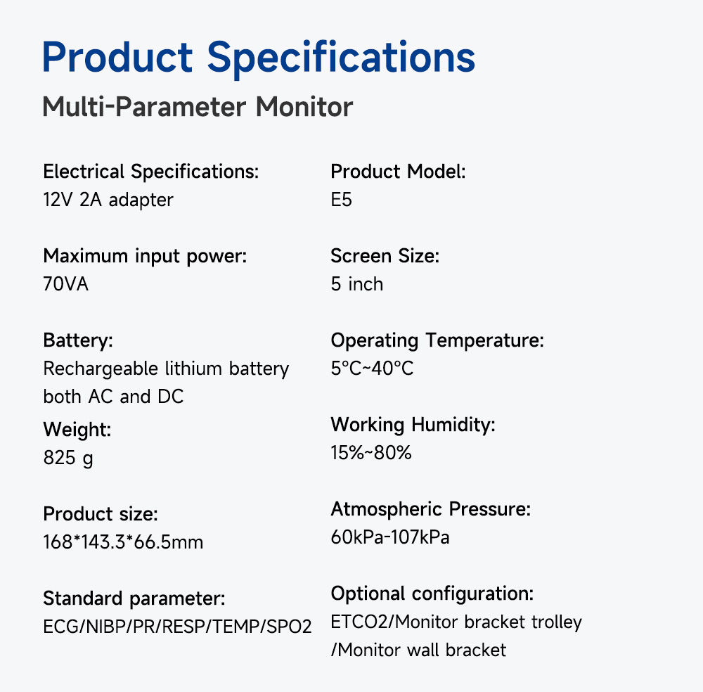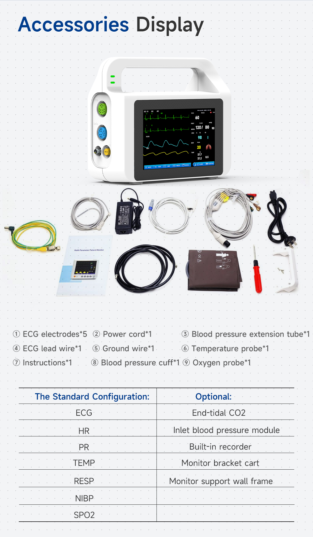 Standard parameter:ECG/NIBP/PR/RESP/TEMP/SPO2